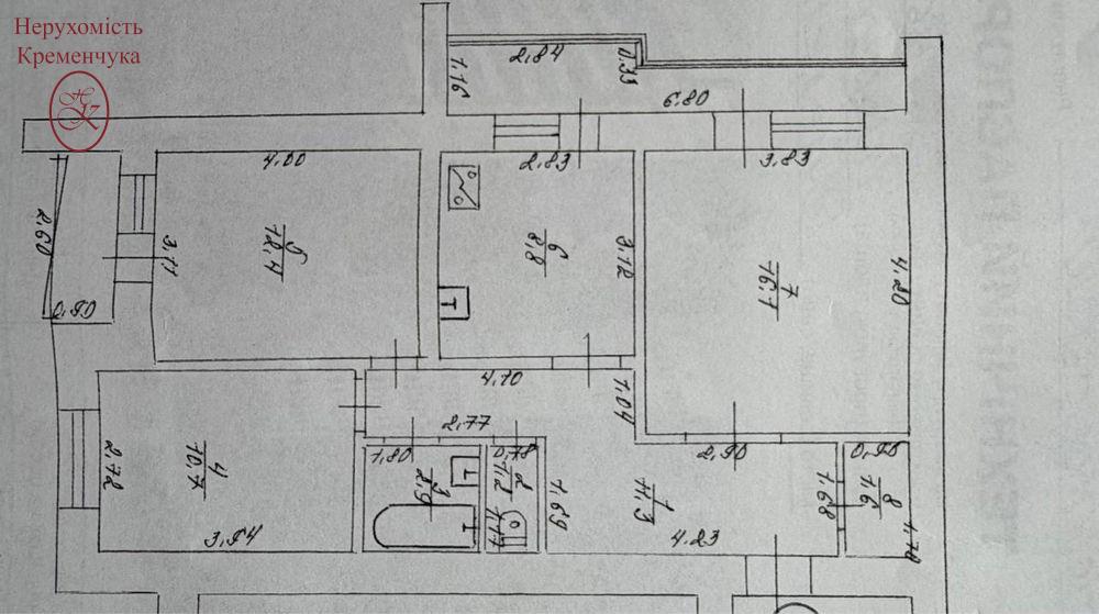 Три окремі кімнати. Сумісний с/в. Кухня 9 м2.