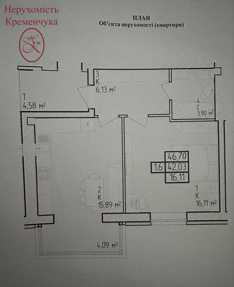 Загальна площа - 47 кв.м